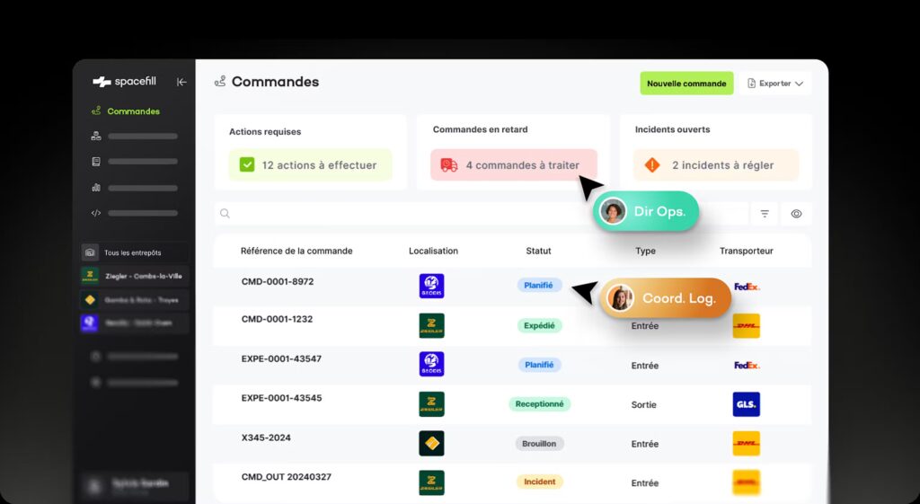 Ce portail développé par Spacefill constitue un point d’entrée unique pour les clients des logisticiens. Ils peuvent y visualiser leurs stocks en temps réel, suivre le statut des commandes et accéder aux documents essentiels. En éliminant la ressaisie, le portail assure une empreinte digitale cohérente, évitant toute rupture d’information lors des échanges.